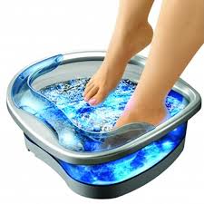 It is soaking both feet in a bubbling foot spa machine followed by thorough rinsing and brushing. This will help to remove old skin and calluses.